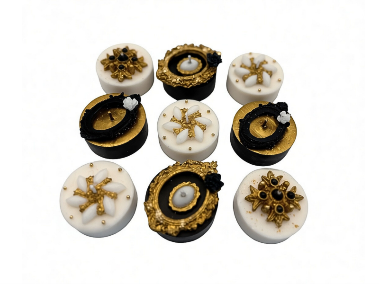Step into a world of mystery and sophistication with the Dine like a Goddess collection. Each handcrafted candle is a delicate fusion of deep black, pure white, and shimmering gold, that creates a luxurious statement piece, designed for those who appreciate drama, sophistication and the essence of timeless luxury.