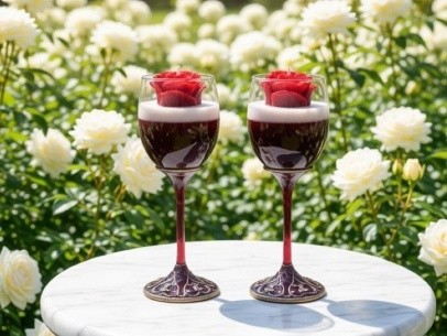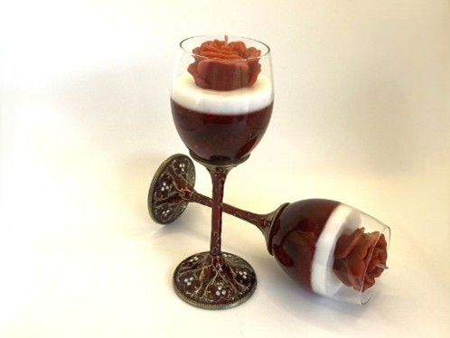 - Hand-poured into ornate wine glasses, blending artistry and romance in every detail